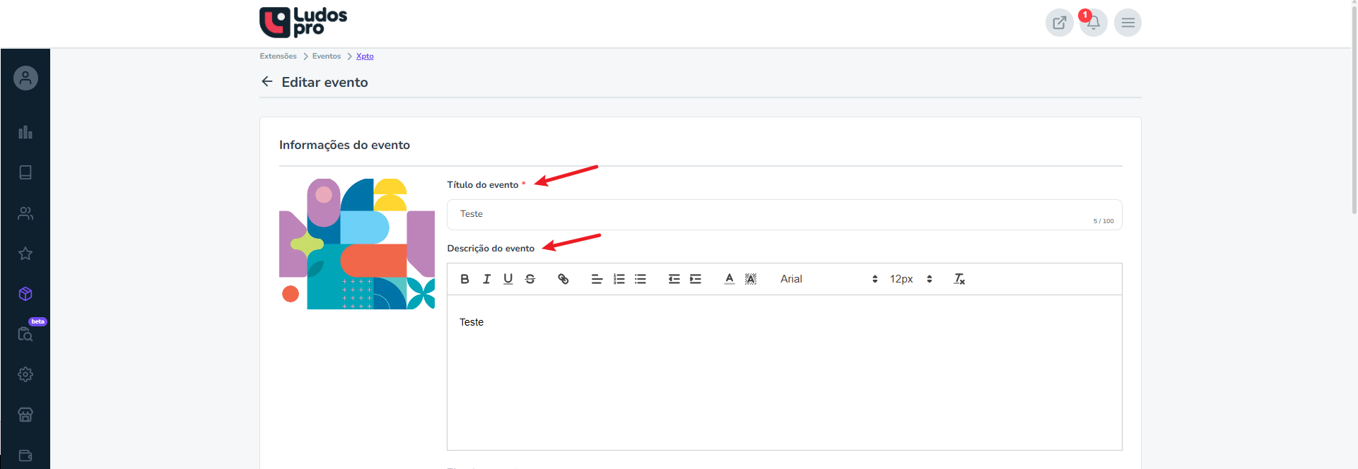 2. Adicione um título (campo obrigatório) e uma descrição para seus usuários possam saber sobre o que se trata o evento.