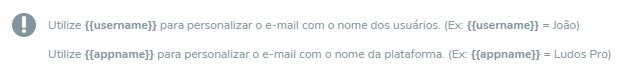 ⚠️Importante: você pode usar os parâmetros da sua plataforma para deixar mais personalizado: