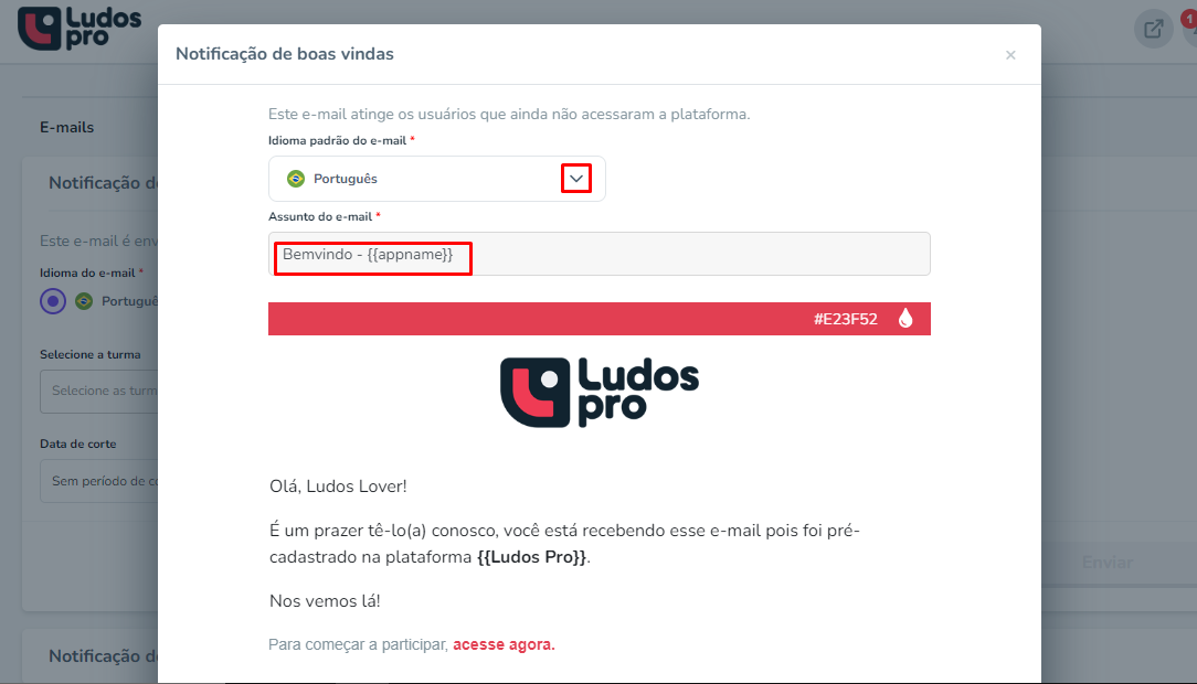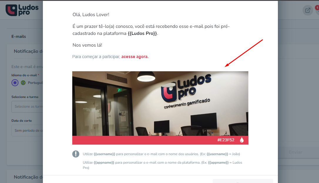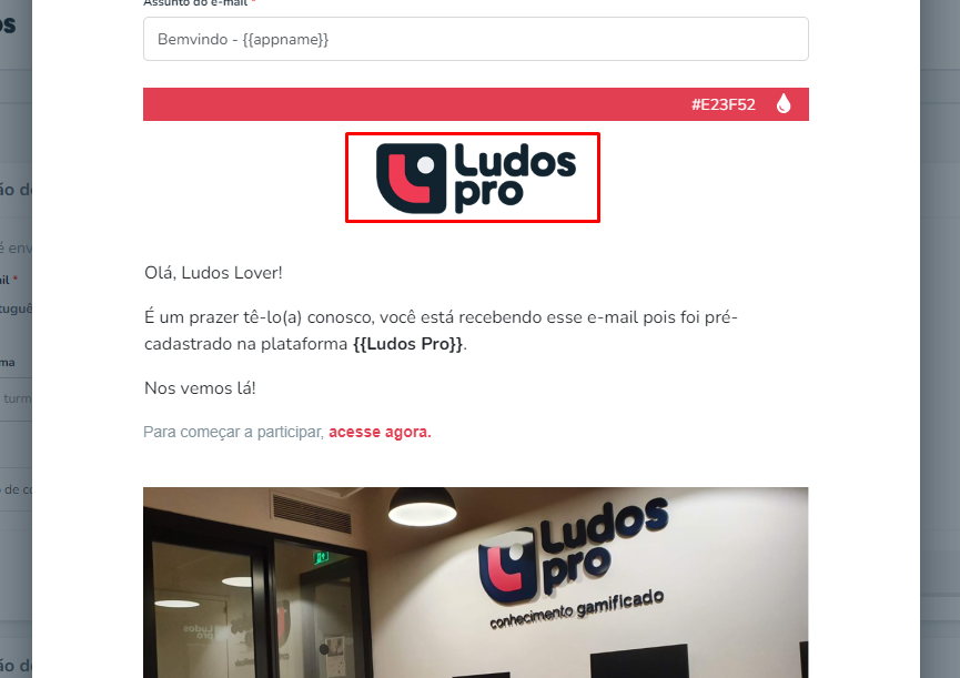 Obs: o logo no início do e-mail será o mesmo logo padrão da sua plataforma: